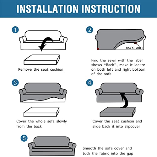 [Facile da montare e antiscivolo] Fare riferimento all'immagine. Ci vorranno alcuni minuti prima che l'installazione sia completata. Basta indossarlo, rimboccare qualsiasi tessuto extra e inserire ancoraggi in schiuma antiscivolo nello spazio tra lo schienale e il cuscino del sedile per un look senza cuciture! Il fondo elastico mantiene saldamente in posizione la fodera del divano.