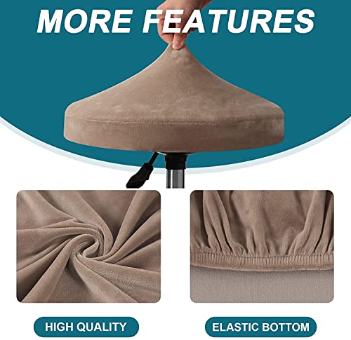 Fodera Sgabello, 2 Pezzi Copri Sgabello Bar, Coprisedia Rotondo In Velluto, Tessuto Elastico Spesso E Rimbalzante Lavabile (Taupe,Large)
