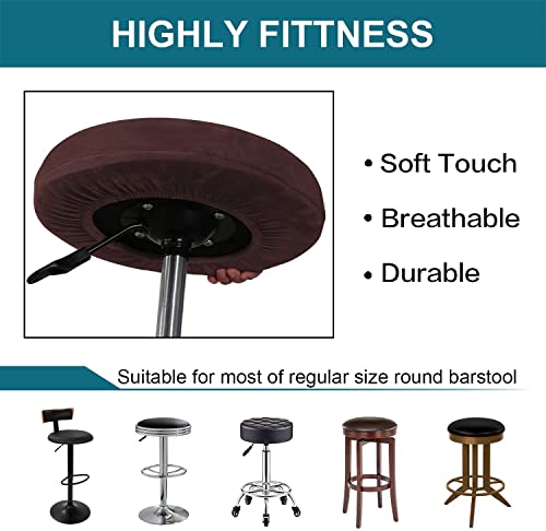 Fodera Sgabello, 2 Pezzi Copri Sgabello Bar, Coprisedia Rotondo In Velluto, Tessuto Elastico Spesso E Rimbalzante Lavabile (Marrone,Large)