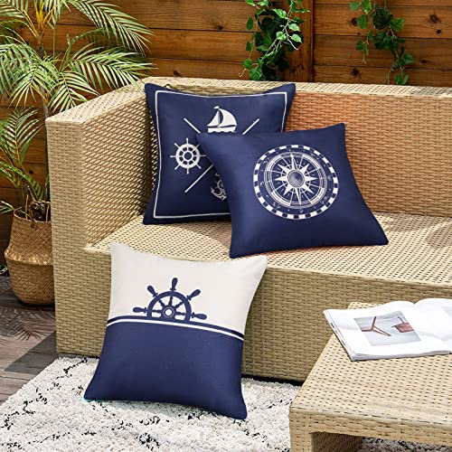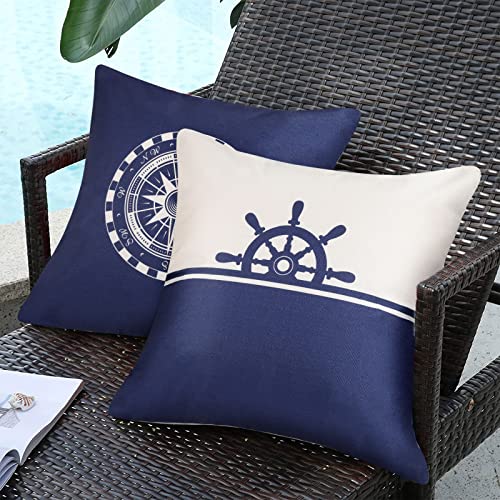 4 Pack Fodere per Cuscini Impermeabili 45 x 45 cm Fodera per Cuscino Barca a Vela Ancora Bussola Timone Decorativo Copricuscini Quadrati in Cotone e Lino per Divano Casa Esterni Interni, Blu Navy