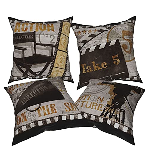 Fodere per Cuscini 4 Pezzi,40x40CM Federe Copricuscini,Cuscini Fodera per Cuscino Decorativo Super Morbido e Traspirante per Soggiorno Camera da Letto Divano Sedia Divano (Cinema Vintage)