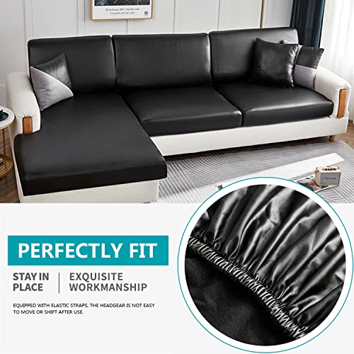 Fodere per Cuscino del Sedile del Divano in Pelle Impermeabile Cuscino per Divano Elastic Fodera per Cuscini dello Schienale Antiscivolo (Nero,Grande 2 posti)