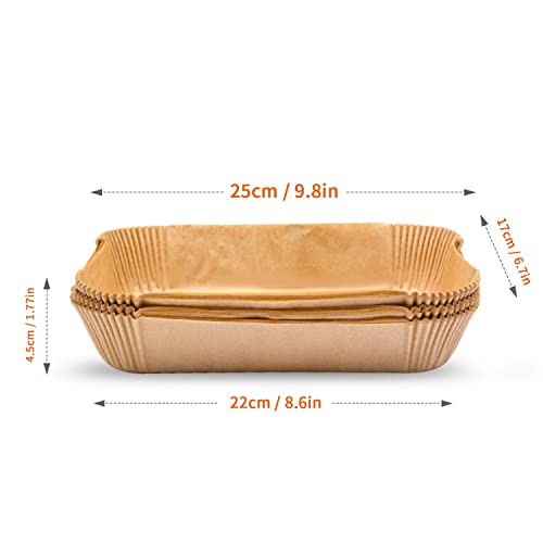 50 fodere per friggitrice ad aria compresa, 22 x 14 cm, set di carta pergamena per friggitrice ad aria compresa, antiaderente, antigrasso, carta pergamena per friggitrice ad aria conmanico per
