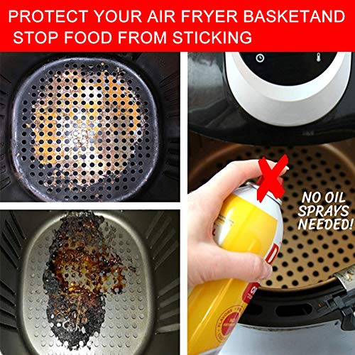 Riutilizzabili: quadrate da 17,5 pollici/8,5 pollici, le lenzuola riutilizzabili per friggitrice ad aria sono state progettate per proteggere il cestello della friggitrice ad aria e impedire che il cibo si attacchi. I nostri tappetini per friggitrice ad aria in silicone ti fanno risparmiare denaro su carta pergamena monouso o su un cestello di ricambio per friggitrice ad aria quando gli esseri di rivestimento si scheggiano o si indossa.