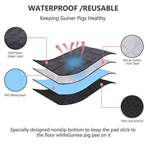 Fodera per gabbia per porcellini d'India: materiale: tessuto in poliestere molto morbido. I 4 pezzi sono sostituibili e lavabili in lavatrice, risparmiando molto tempo e denaro. Fondo impermeabile, senza infiltrazioni d'acqua per proteggere il pavimento.