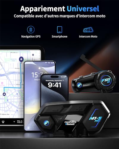 FODSPORTS M1S PRO Interfono Moto Bluetooth Auricolari Casco Coppia Con Hi-Fi,CVC Riduzione Rumore,Auricolare Casco Moto Supporta Interfono Per 8 Motociclisti Simultaneo Entro 2000m,Mani libere