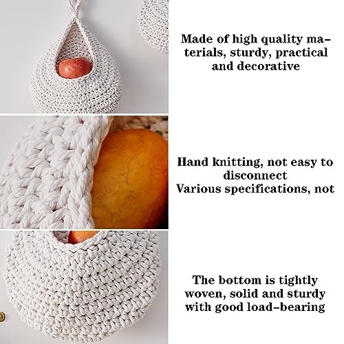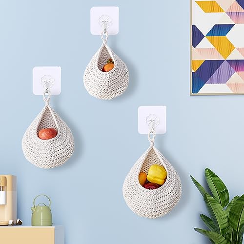 FOGARI Cestini da frutta da appendere per cucina, 3 confezioni di cesti da appendere a parete in stile boho, con 3 ganci resistenti, in tessuto a mano, per conservare frutta, verdura, patate, cipolle