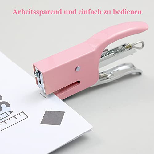 FOGARI - Set di pinzatrici per ufficio, mini cucitrice da scrivania Effortless con pinze, graffette, forbici, per la scuola, cucitrice manuale, 16 fogli, capacità per la casa, l'ufficio (rosa)