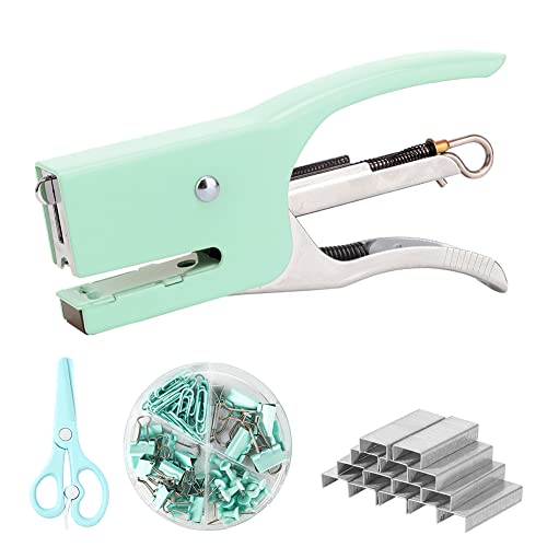 FOGARI - Set di pinzatrici per ufficio, mini cucitrice da scrivania Effortless con pinze, graffette, forbici, per la scuola, cucitrice manuale, 16 fogli, capacità per la casa, l'ufficio (verde)