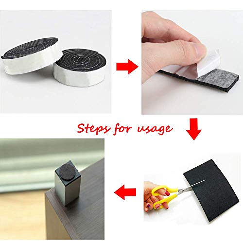 【Durevole】: C'è nastro autoadesivo sul retro del feltro nero, che può essere saldamente incollato ai mobili, alle gambe del tavolo e alla sedia, non facile da staccare e durevole. È la tua scelta migliore.