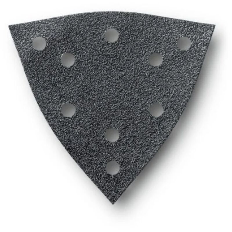 Fein FOGLI ABRASIVI FORATI,Grana120,Conf.16 pz. Indicato per platorello triangolare di grandi dimensioni con lunghezza del bordo di 130 mm. La grana abrasiva in corindone e il legante in resina sintetica assicurano un'elevata capacità di asportazione, senza impastarsi, e una lunga durata. Per un impiego universale su quasi tutti i materiali. Forato, per l'utilizzo con platorello forato e cuffia di aspirazione, fissaggio rapido a velcro. Numero d'ordine: 6 37 17 295 02 0 SPECIFICHE TECNICHE Grana-120 Lunghezza bordo-130 mm Conf.-16 pz.