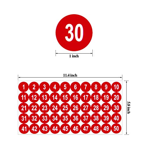 10 Fogli da 1 a 50 Adesivi Numerici Adesivi Numerici Consecutivi in Vinile 1 Pollice Decalcomania Autoadesiva per Etichette Impermeabili per Interni e Esterni Adesivi Numeri Inventario (Rosso)