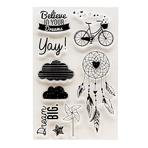 Fogli di adesivi trasferibili per Scrapbooking, motivi: acchiappasogni, bicicletta, nuvola trasparente chiara,