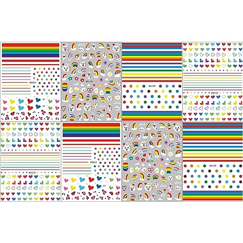 8 Fogli Adesivi Unghie Arcobaleno Cuore colorato Nail Art Stickers Autoadesivi Stickers Unghie Decorazioni