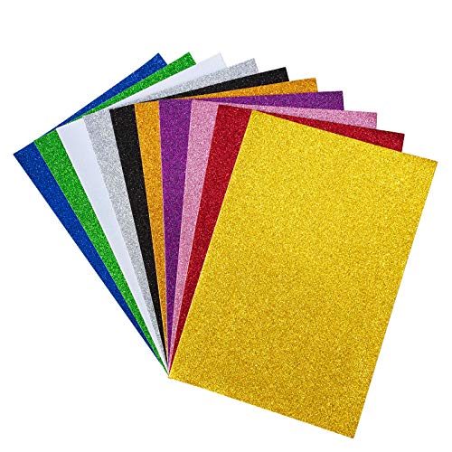 Fogli Autoadesivi Glitterati in Gommapiuma, Fogli in Schiuma con Glitter A4 per Bambini Lavori Artigianali Fai da te, Hobby Creativi Bricolage Patchwork, Decorazione di Natale Feste (10 Colori )