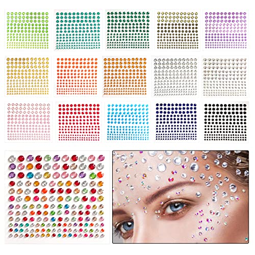 16 Fogli Autoadesivi Strass di Cristallo.Adesivo Strass di Perline Brillantini Multicolori.Adesivo Colorato con Strass per Viso Corpo Occhi Nail Art.2640 pezzi Adesivi Gemme Rotonde per Decorazione