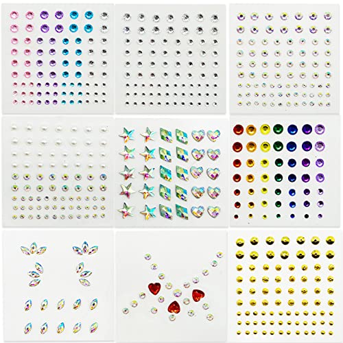 9 Fogli Brillantini Adesivi di Gemme per Viso Corpo Occhi Strass Adesivi Strass Autoadesivi Arcobaleno Gemme per Viso per make up Accessori per Festival e Decorazioni per Nail Art