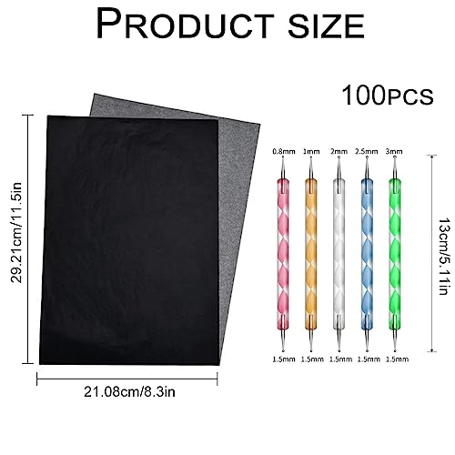 100 Fogli Carta Carbone Nera Carta Copiativa per Tessuti Carta Carbone per Disegno Carta Carbone per Tessuti Nera Carta Copiativa di Grafite con 5 Pezzi Stilo per Goffratura