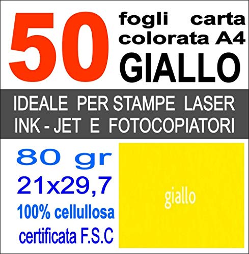 50 fogli carta giallo forte a4 80gr risma 50ff monocolore