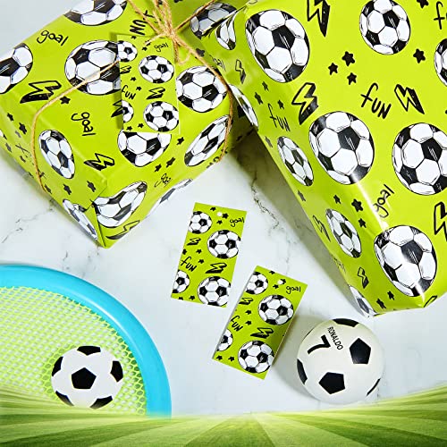 4 Fogli Carta da Imballaggio da Calcio con 4 Fogli Etichetta Regalo Calcio Carta da Regalo di Cartone Animato per Confezionamento Carta Kraft con Stampata Calcio per Compleanno, 70 x 50 cm