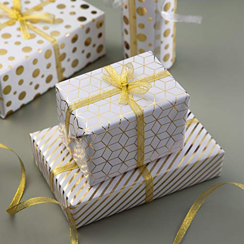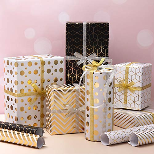 Fogli di Carta da Regalo 5 Fogli Carta Regalo e 2 Rotoli di Nastro Carta Regalo Uomini Femminili Regali Stampa Dorata per Compleanno Natale Regali Anniversari Matrimonio Ringraziamento