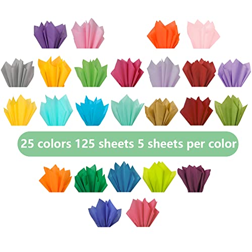 125 Fogli di Carta Velina Colorata, 25 Colori Carta Velina da Imballaggio, per Realizzare Pompon, Fiori di Carta, Regalo Riempitivi per Scatole, Matrimoni Feste di Compleanno Natalizia (35 X 50 cm)