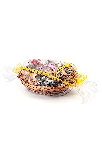 I fogli trasparenti sono idonei al contatto con alimenti e resistenti, perfetti per impacchettare cesti natalizi e pacchi pasquali, anche di grandi dimensioni