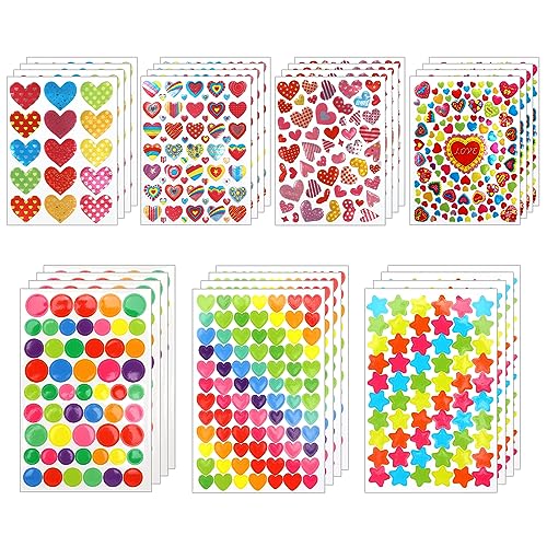 Varietà affascinante: con una confezione risparmio da 28 fogli in 7 stili, i nostri adesivi a forma di cuore sono disponibili in diverse misure. Hai una vasta gamma di opzioni per aggiungere un tocco di brillantezza e amore ai tuoi progetti.