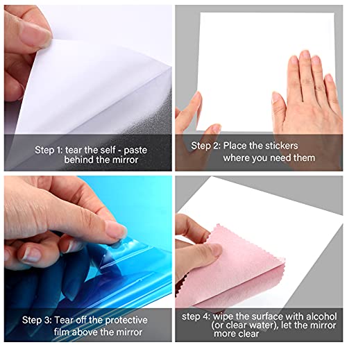 Facile da incollare e utilizzare: i fogli flessibili dello specchio sono progettati con una pellicola protettiva bianca sulla superficie (per proteggere la superficie dello specchio dalla distruzione o dai graffi durante il trasporto), devono solo essere rimossi prima dell'uso e con adesivo autoadesivo sul retro, può essere incollato su qualsiasi superficie pulita e liscia