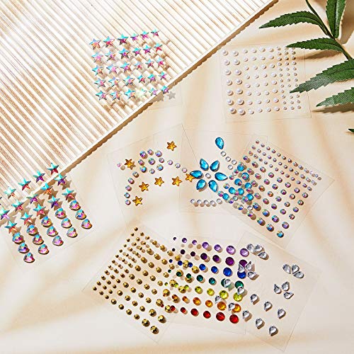 9 Fogli di Gemme per Viso Corpo Occhi Strass Adesivi Strass Autoadesivi Gemme per Viso Arcobaleno per Donne Accessori di Festival e Decorazioni di Manicure