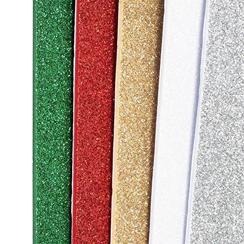 10 fogli di gomma espansa glitterati | Fogli in schiuma EVA | Carta Crepla con glitter | Autoadesivi | Formato DIN A4 | Per lavori di bricolage (oro, argento, bianco, rosso & verde)