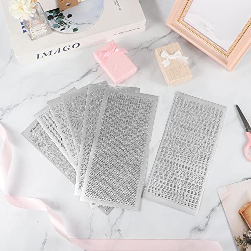 7 Fogli Lettere Adesive, Alfabeto Adesivo Argento Lettere e Numeri Autoadesivi Adesivi Decorativi Lettere per Candela Battesimo Comunione Matrimonio Album di Ritagli