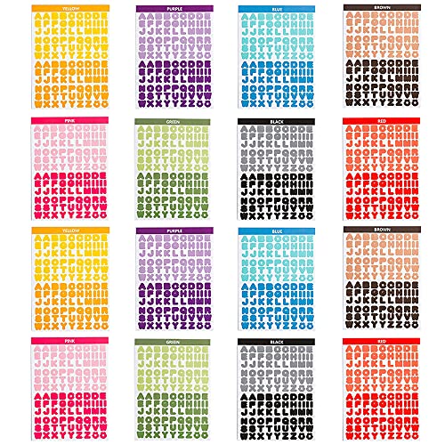 16 Fogli Lettere e Numeri Adesivi, Autoadesivi Letter Stickers, Adesivi Lettere Alfabeto Colorate, Colorati Regalo Alfabeto Adesivi, 8 Colori, per Scrapbooking, Decorazione di Biglietti di Auguri