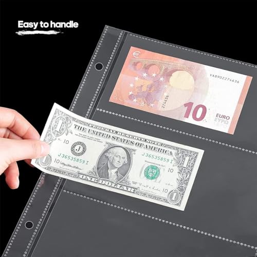 5 Fogli di pagine di valuta per la raccolta di banconote,3 tasche custodie per valute/portamonete per la raccolta di pagine di album banconote di banconote in carta tagliata(15 sacchetti in totale)