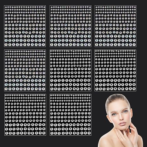 8 Fogli 1320 Pezzi Brillantini Make Up, Brillantini Adesivi per Viso, Strass Adesivi per Make Up, Autoadesivo Cristallo Strass Adesivo Decorazione DIY Adesivi Acrilico Glitter Gemme Perline