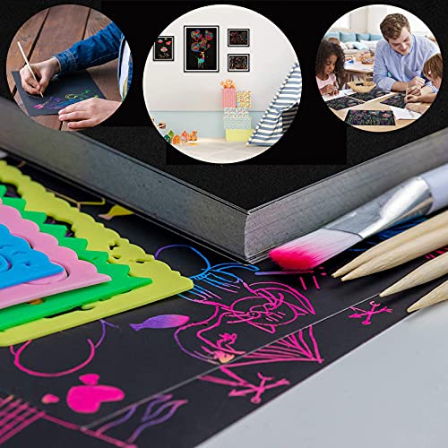 100 Fogli Scratch Art Notes per Bambini Scratch Art Fogli da Disegno Fogli di Disegni Scratch Art Carta per Graffi Arcobaleno Magico, Arcobaleno Scratch Painting Paper, 10 Stilo, 8 Stencil