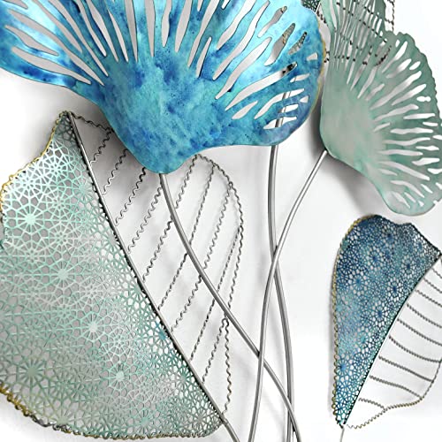 ADM - 'Foglie traforate' - Quadro in metallo, scultura da parete, realizzato totalmente a mano con tecniche artigianali - Blu - H77 cm