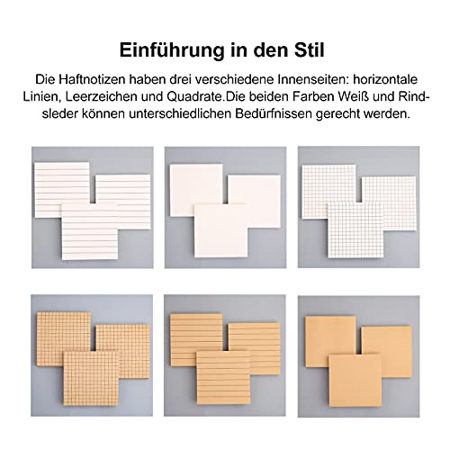 Tre diverse pagine interne: i foglietti adesivi hanno tre diverse pagine interne: linee orizzontali, spazi e quadrati. I due colori bianco e pelle bovina possono soddisfare diverse esigenze.