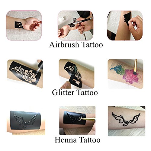 436 foglio piccolo glitter tatuaggio stencil per donna bambini disegno carino fiore incisione vetro aerografo tatuaggio stencil & modelli regalo album