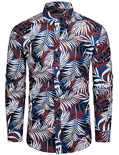 Fohemr Camicia da Uomo a Maniche Lunghe in Cotone con Stampa Floreale Stampa Floreale Blu Medium