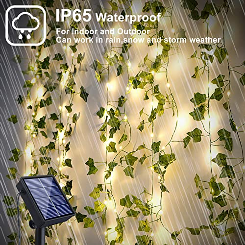 【Luci Solari Giardino Impermeabili IP65】Le luci artificiali della ghirlanda di edera sono impermeabili IP65 e resistenti al calore, le luci di fata alimentate ad energia solare possono resistere a tutti i tipi di tempo, compresa la pioggia pesante e la neve, e stabilmente lavorare per un tempo molto lungo nei giorni di pioggia, ornamento ideale per l'esterno, durevole e sicuro da usare.