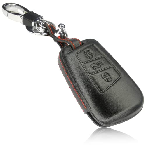 FoilsAndMore Custodia Compatibile con Chiave Auto VW Skoda Seat 3 Tasti (solo Keyless-Go) - Custodia in pelle per chiave in nero rosso 4D