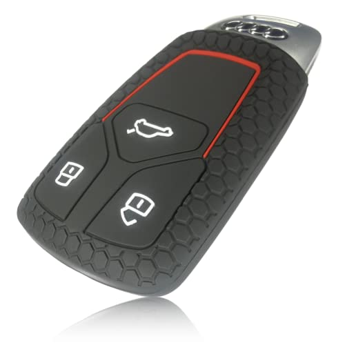 FoilsAndMore Custodia Compatibile con Audi 3 Tasti Chiave Auto SmartKey (solo Keyless Go) - Custodia protettiva in silicone per chiave in nero e rosso