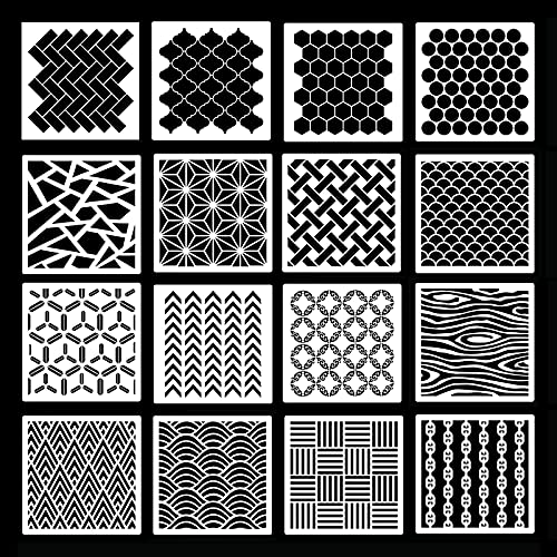 Fokanlo, 16 stencil geometrici riutilizzabili per scrapbooking, fai da te, casa, piastrelle, pavimenti, mobili, disegni, decorazioni, bricolage, 19 cm e 20 cm