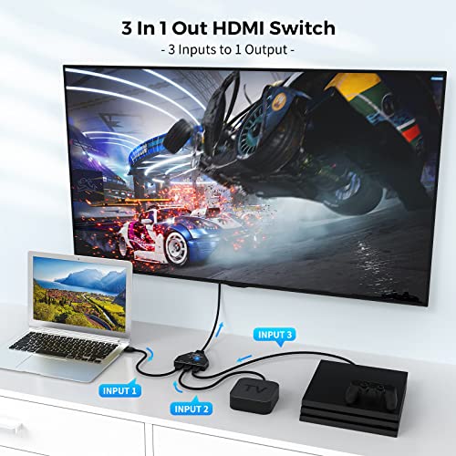 【Switch HDMI 4K@60Hz】 Lo splitter HDMI può collegare 3 dispositivi di ingresso HDMI attraverso 1 display HDMI, risolvendo così il problema dell'insufficienza di HDMI splitter per i dispositivi. L'uscita di sdoppiatore HDMI viene fornita con un cavo HDMI 2.0 da 50 cm e gli utenti non devono acquistare cavi HDMI. NOTA: non è possibile collegare 3 monitor contemporaneamente.)