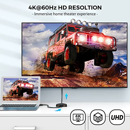 【Alta risoluzione】Lo splitter HDMI supporta le risoluzioni 4K@60Hz, 4K@30Hz, 1080P e 3D, HDR, HDCP 2.2, audio Dolby Vision. Offre immagini meravigliose e un'esperienza visiva sconvolgente, regalando una festa video simile a quella di un film. (Nota: per ottenere video 4K vividi, utilizzare un cavo HDMI 2.0 standard).