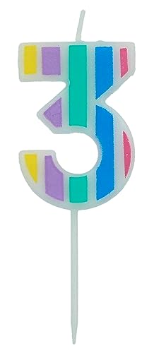 Folat 24263 Candele Pastello Numero 3 Multicolore-Decorazioni Torta adatto Feste di Compleanno, Anniversario, Matrimonio, Baby Shower, 5 cm