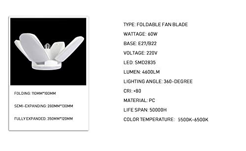 The New 60W Foldable Fan Blade LED Pendant Lights No Flicker B22 E27 LED Bulb 220V 360 Degrees Angle Adjustable Ceiling Lamp