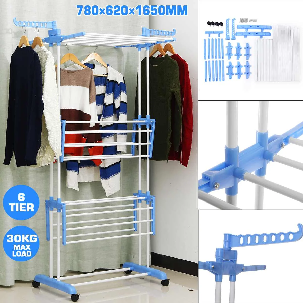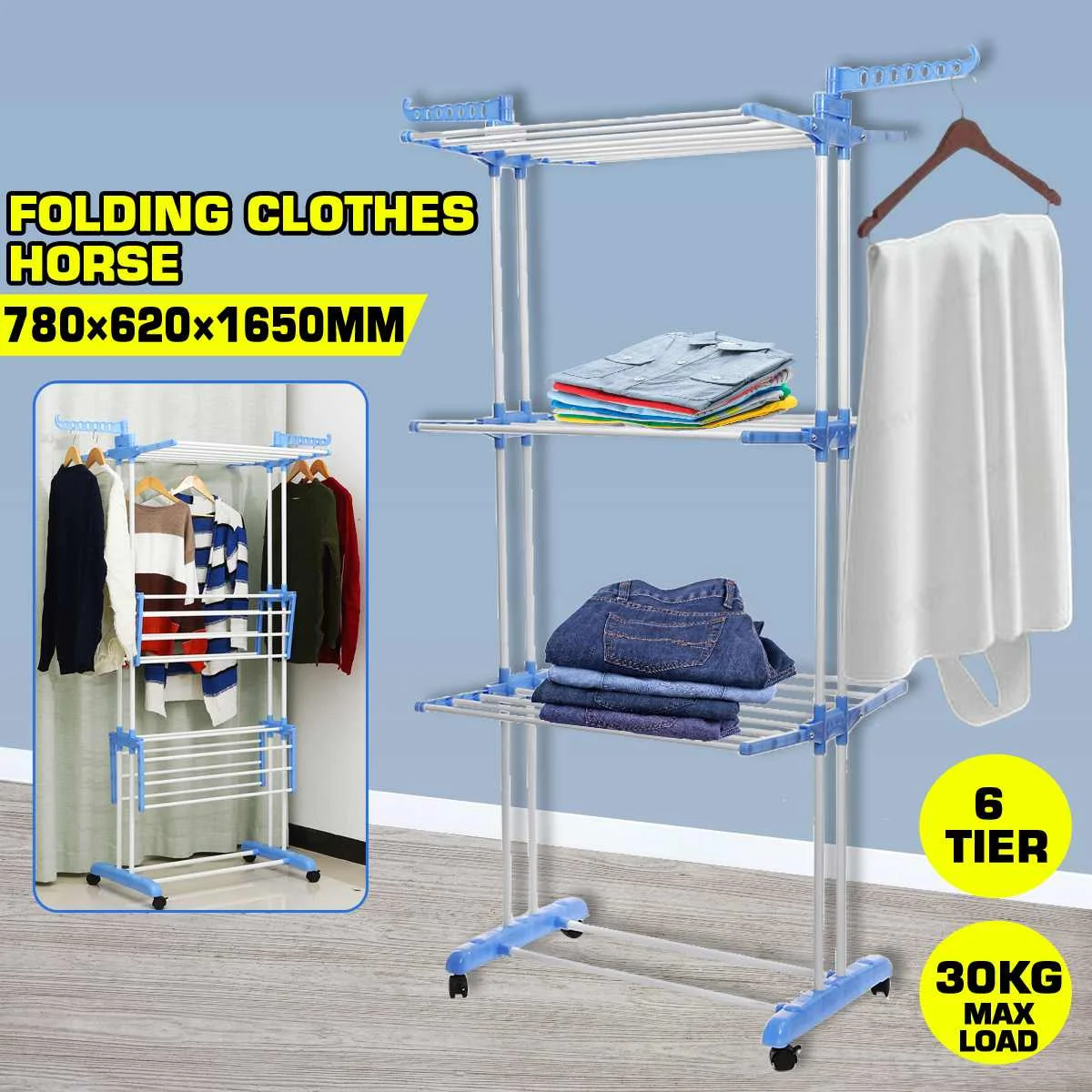 Foldable Roller Type Clothes Towels Hanger Shelf Standing Garment Rack Organizer Home Bathroom Organizer Laundry Cloth Drying Ra
