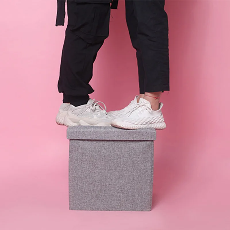 Foldable Storage Stool storage baskets Fabric storage box use as a stool Bedroom living room footrest laundry basket 30*30*30